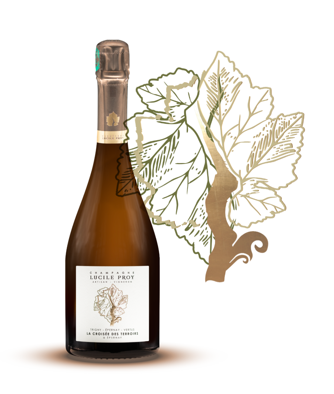 Un champagne de prestige, pensé comme un point d’équilibre entre nos origines, nos savoir-faire et nos terroirs. Sur l’étiquette, deux feuilles se superposent : la feuille dorée, signature de la maison, et une feuille verte, symbole vivant de l’union des terroirs.